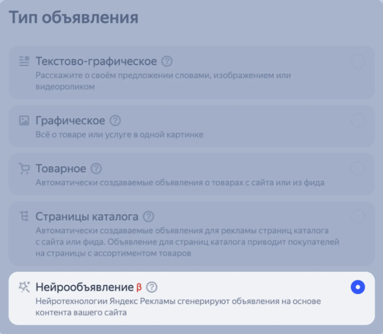 В апреле 2025 года в Директе появилась возможность добавлять объявления, сгенерированные с помощью нейротехнологий.