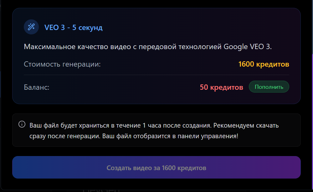 При составлении промпта для нейросети помните, что вы создаете видео, а не текст.