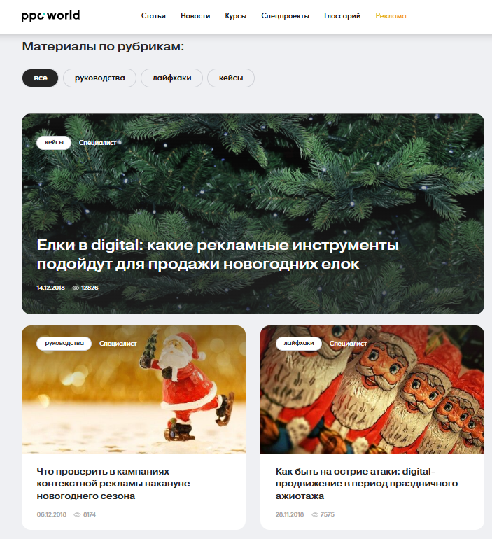 Источник: скриншот страницы спецпроекта ppc.world Так бизнес сможет прорекламировать себя в период повышенного спроса и повысить экспертизу в глазах читателей.