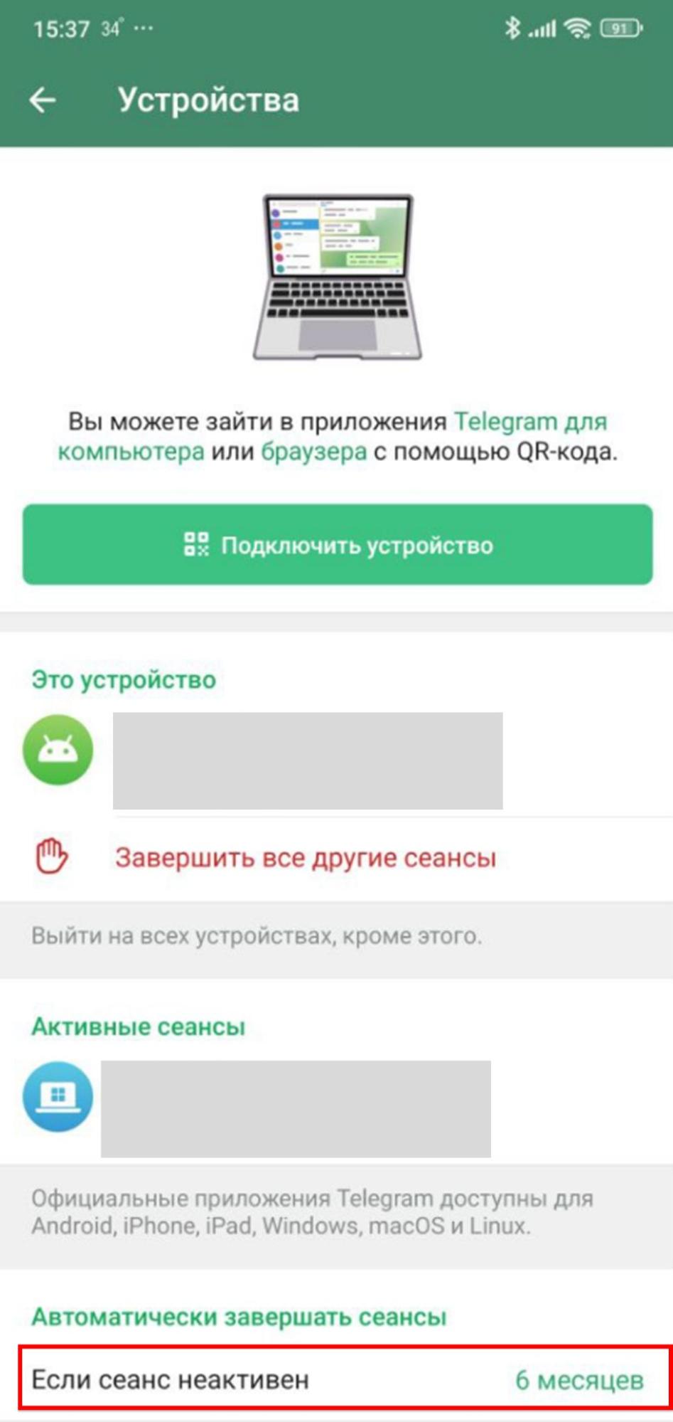 Чтобы предотвратить кражу сеанса, введите себе правило — регулярно проверять сеансы в мессенджере и завершать ненужные. Для этого: