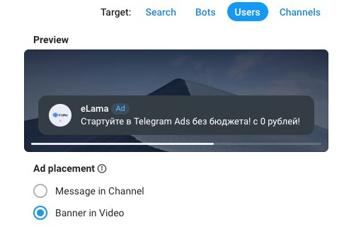 Кстати, выгоднее проводить тесты можно с eLama. Через площадку можно запускать рекламу в Telegram Ads: