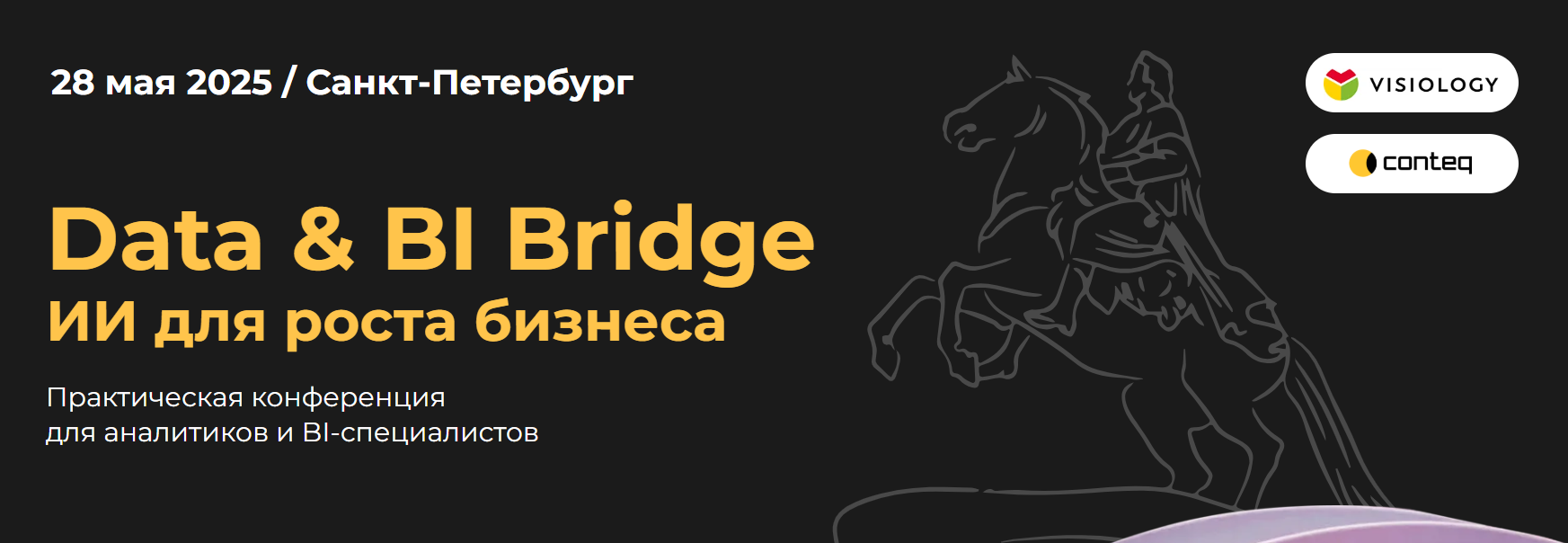 Почему стоит посетить: совместная практическая конференция Visiology и Conteq о передовых технологиях в аналитике данных для аналитиков и BI-специалистов. В программе — реальные кейсы от компаний, которые используют нейросети в BI-аналитике, автоматизация бизнес-процессов с помощью AI и конкурс с бесплатным BI-проектом для победителя.