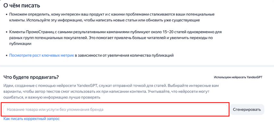 ПромоСтраницы доработали раздел «О чем писать» до уровня ChatGPT