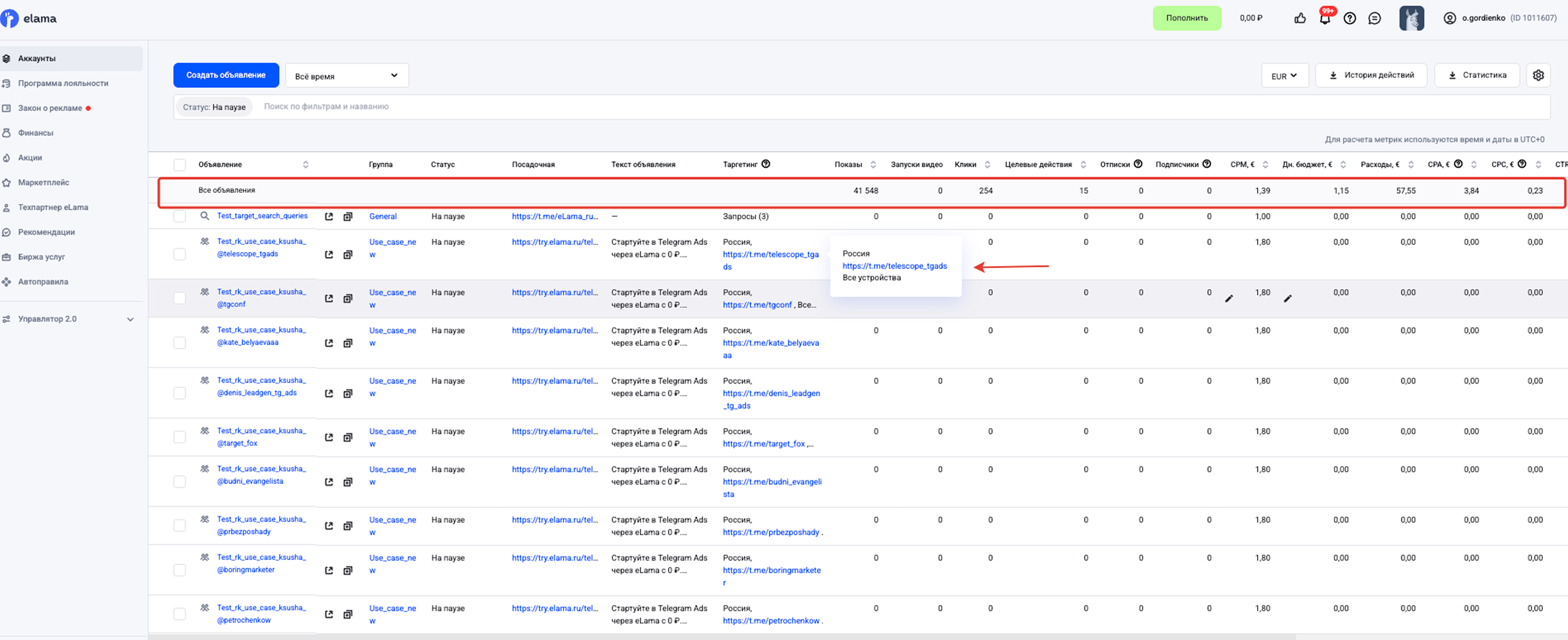 Функционал уже был реализован в «синем кабинете» Telegram Ads в таблице со всеми объявлениями, но в очень усеченном формате. Смотрите сами.