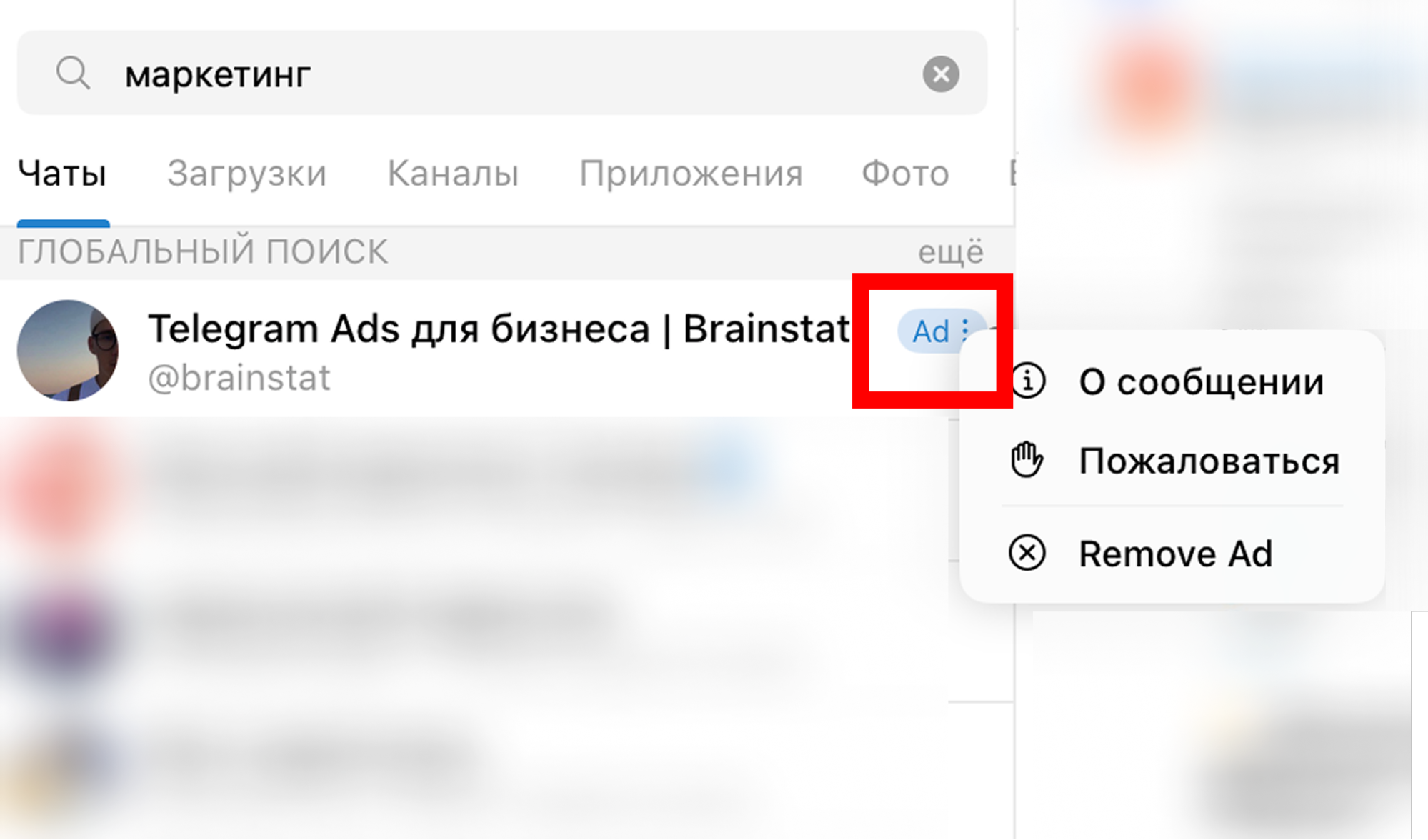 В Telegram Ads появился новый таргетинг — Search. Он позволяет запускать рекламу в глобальном поиске мессенджера. Рекламодателю нужно настроить ключевые слова, добавить заголовок объявления и URL, а потом задать частоту показов, расписание и статус. Объявление будет показываться над выдачей в глобальном поиске на мобильных устройствах и десктопах, а рядом с заголовком будет отметка о рекламе.