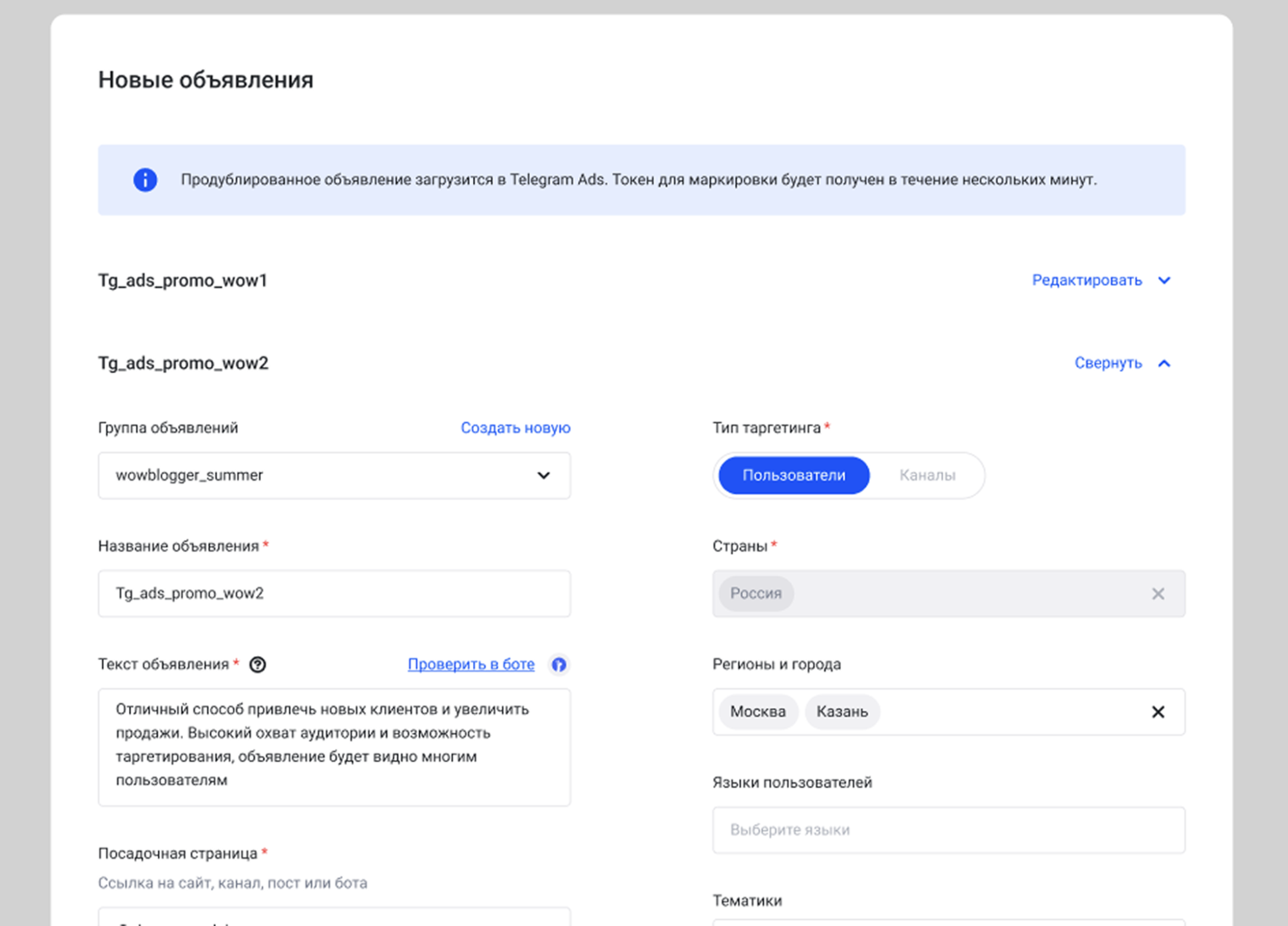 Бесплатный инструмент автоматизации Telegram Ads для всех клиентов