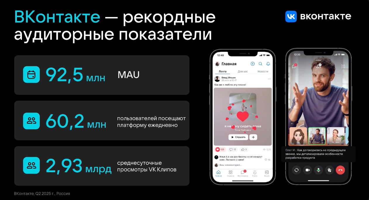Это хорошие цифры, которые говорят о том, что аудиторию вашего бизнеса можно найти во ВКонтакте.
