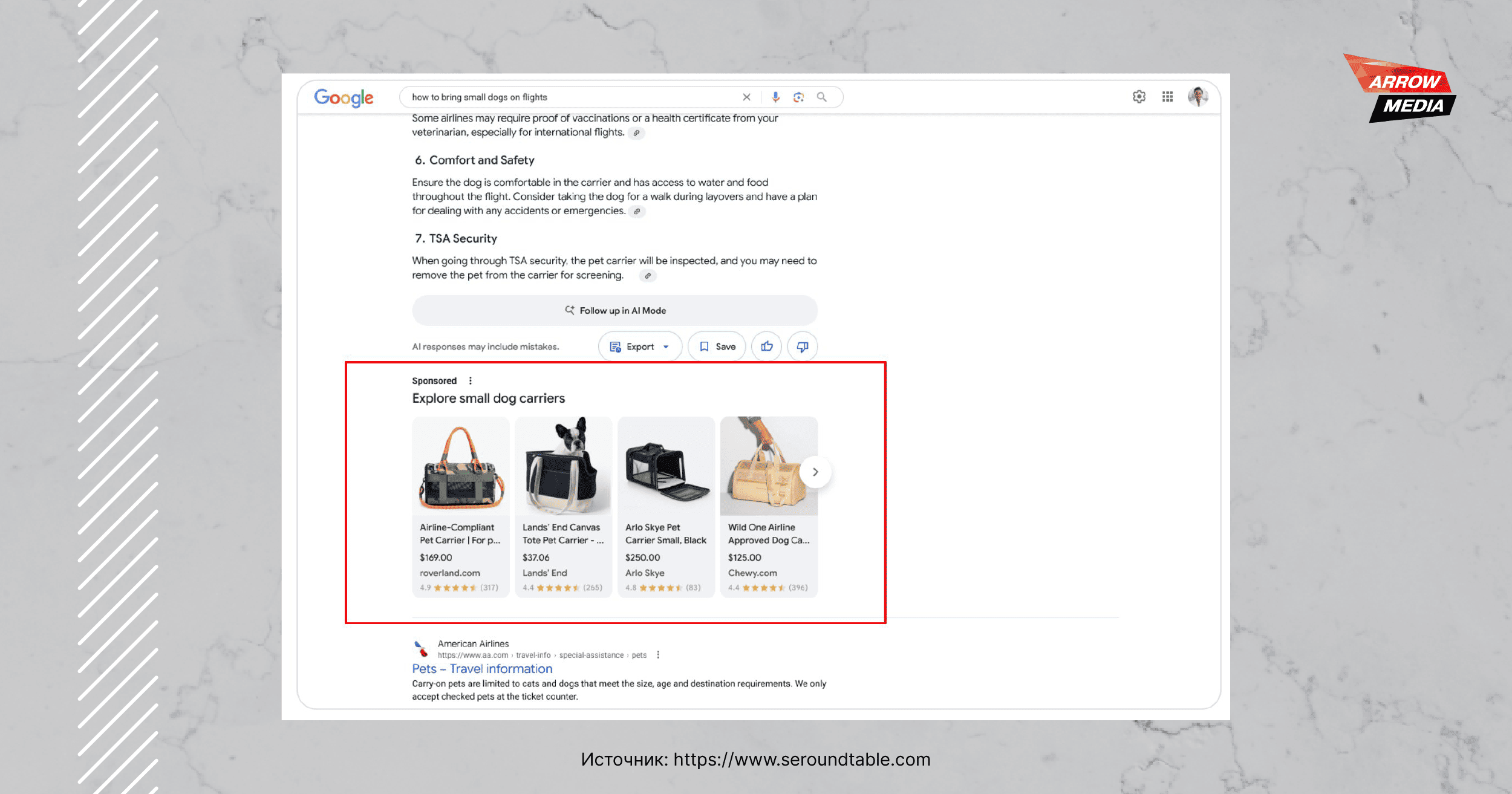 Уже есть эксперименты, в рамках которых объявления встраивались прямо в ответы ИИ-Поиска. Пока формат не получил широкого распространения, однако тенденция к интеграции рекламы в ИИ-выдачу очевидна, и за ней стоит внимательно следить.