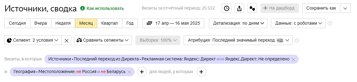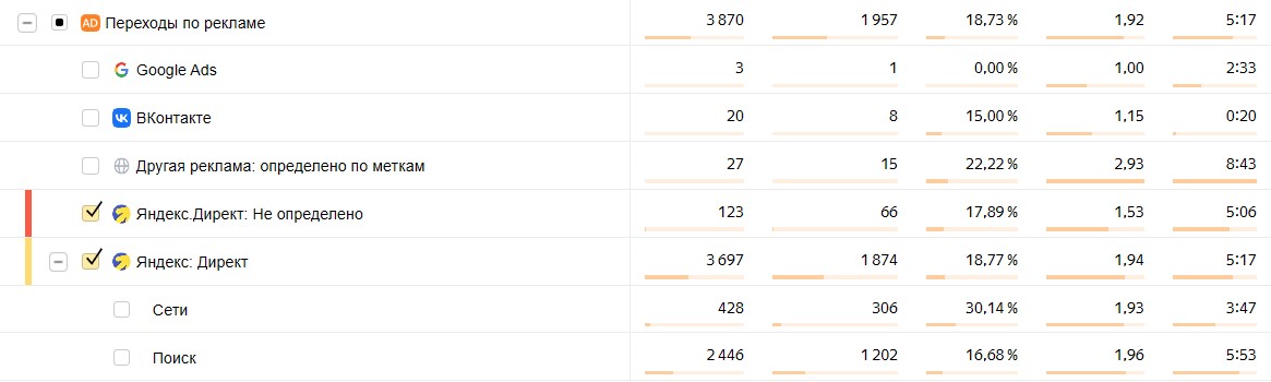 Используйте UTM-метки к любым каналам, где размещаете ссылки на сайт. Это ускорит фильтрацию и анализ визитов.
