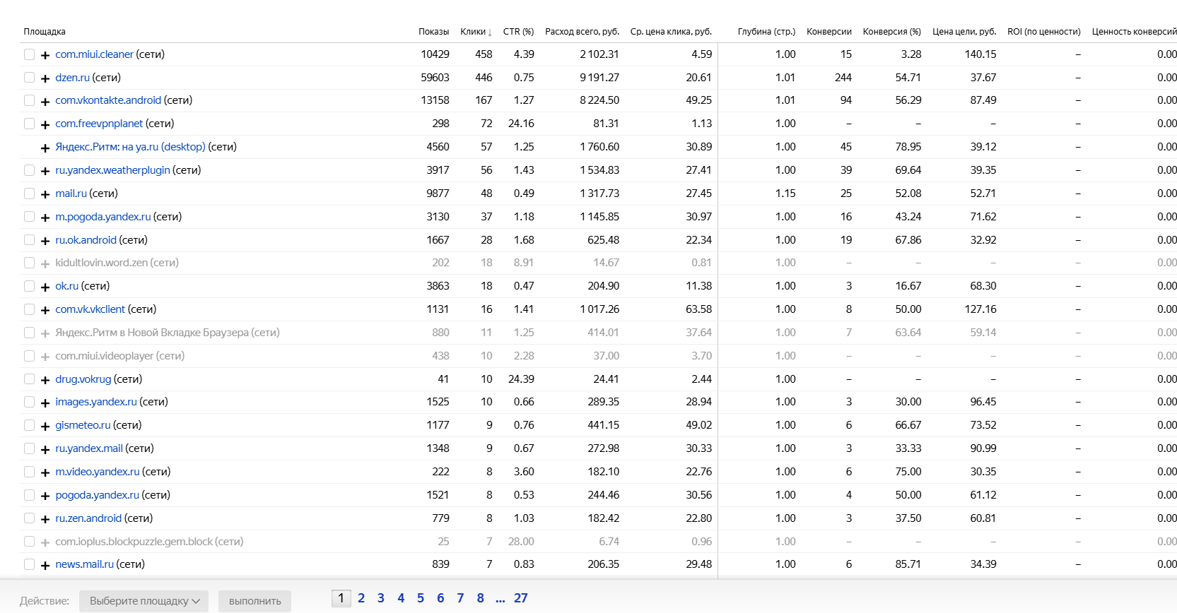 Также смотрите на статистику по площадкам в основных отчетах Директа.