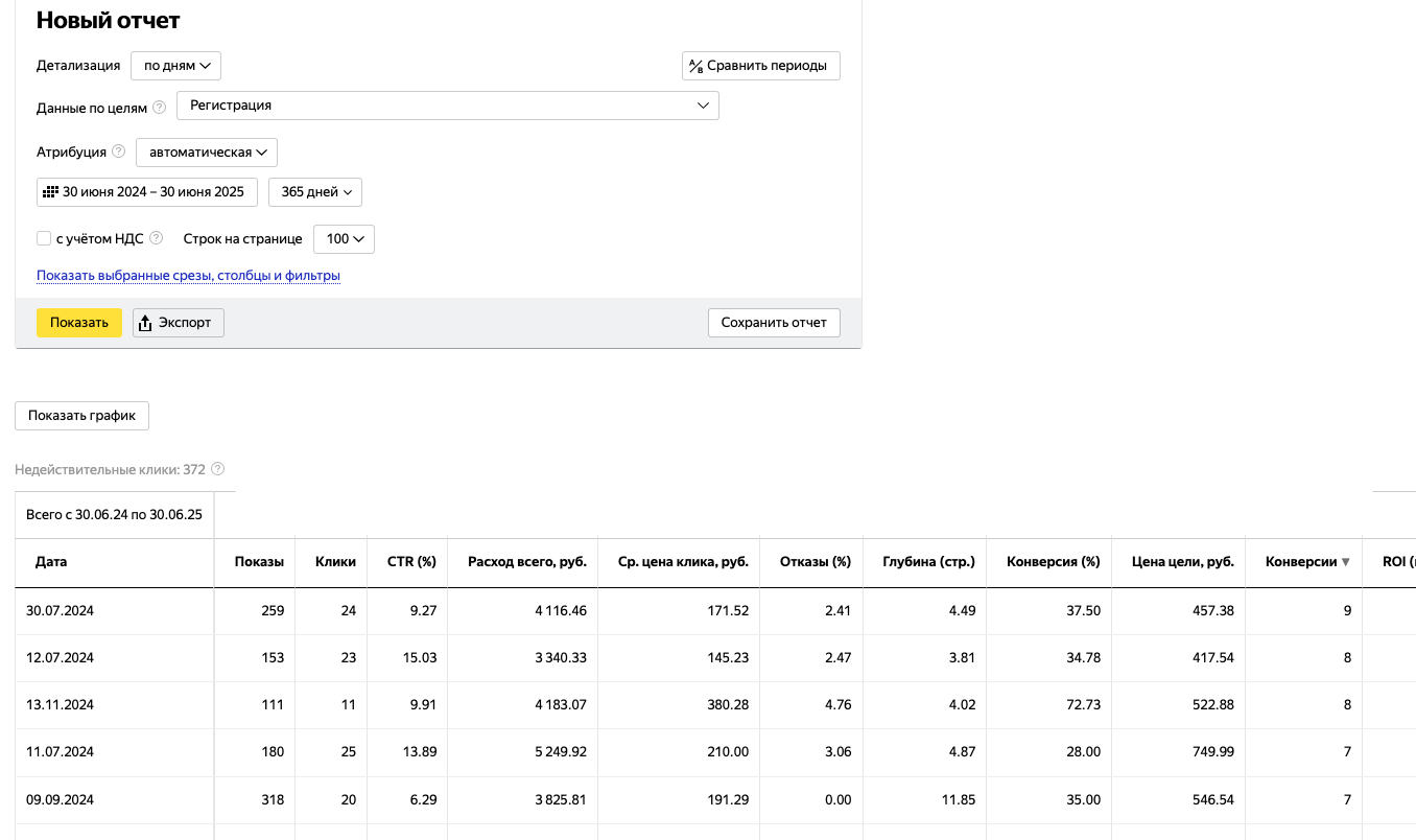 перейдите в отчеты рекламной кампании по ключевым фразам, площадкам и другим параметрам;