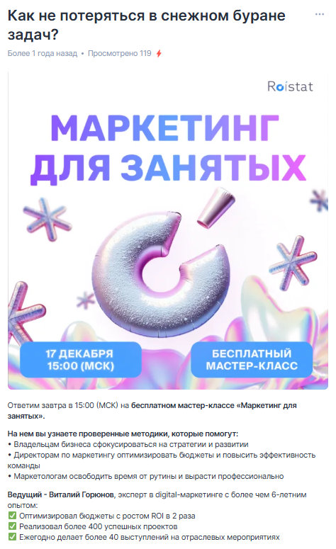 Каждый материал решал конкретную задачу маркетолога или руководителя и давал практическую пользу — без необходимости переходить по ссылкам.