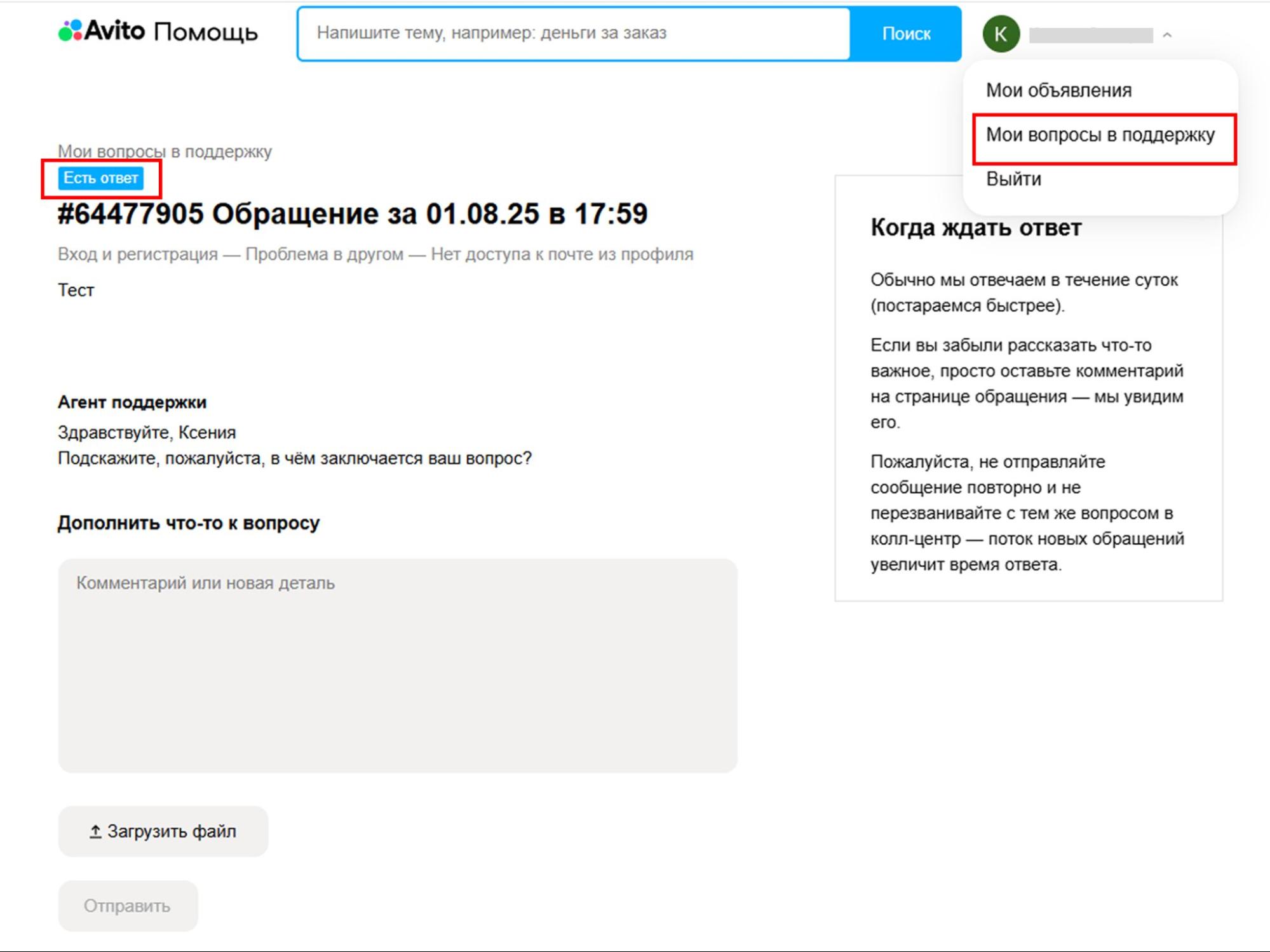 Да, для этого зайдите в раздел «Сообщения», «Поддержка Авито» в приложении или в «Мои вопросы в поддержку» в десктопной версии.