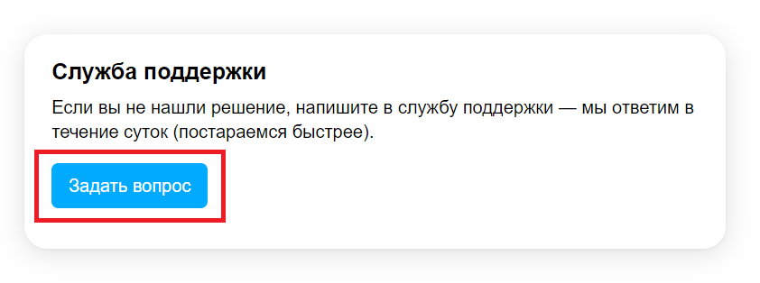 Шаг 3. Если вашего запроса нет в списке часто задаваемых вопросов, перейдите в самый низ страницы и нажмите на кнопку «Задать вопрос».
