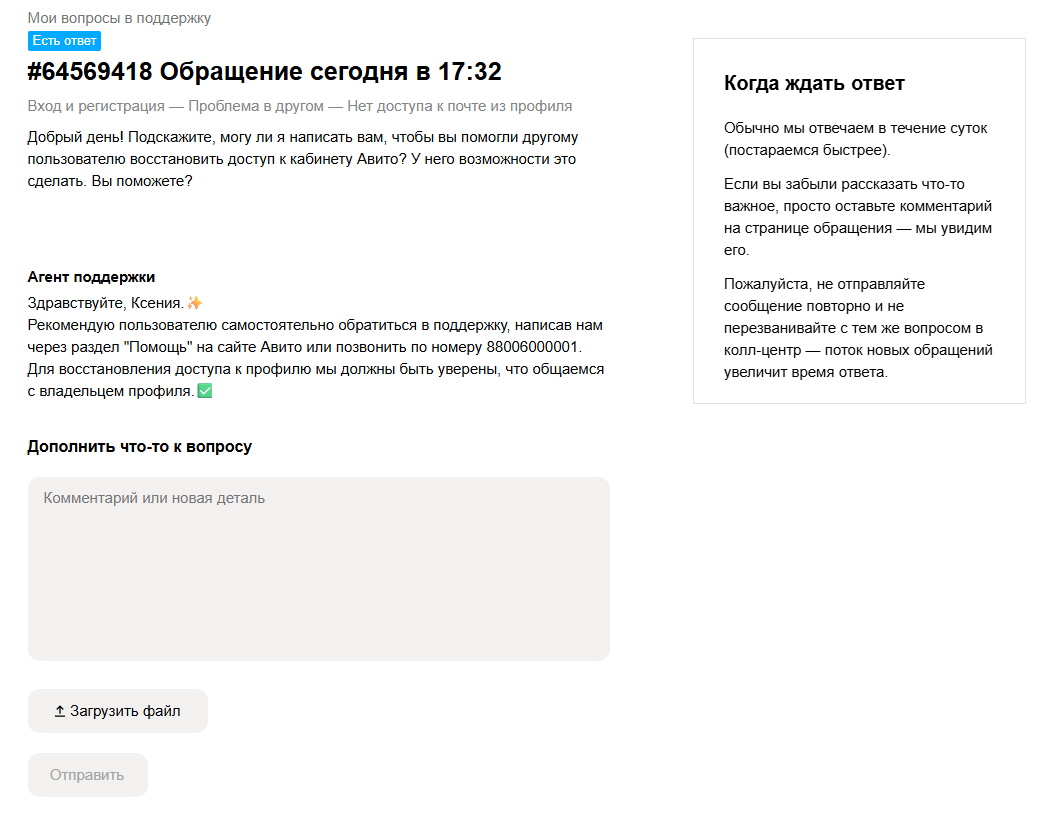 При этом в сети есть негативные отзывы о поддержке Авито: пользователи жалуются на некомпетентность, шаблонность ответов, нежелание помогать. Мы не можем это ни подтвердить, ни опровергнуть, поскольку обращались в поддержку только с простыми вопросами.