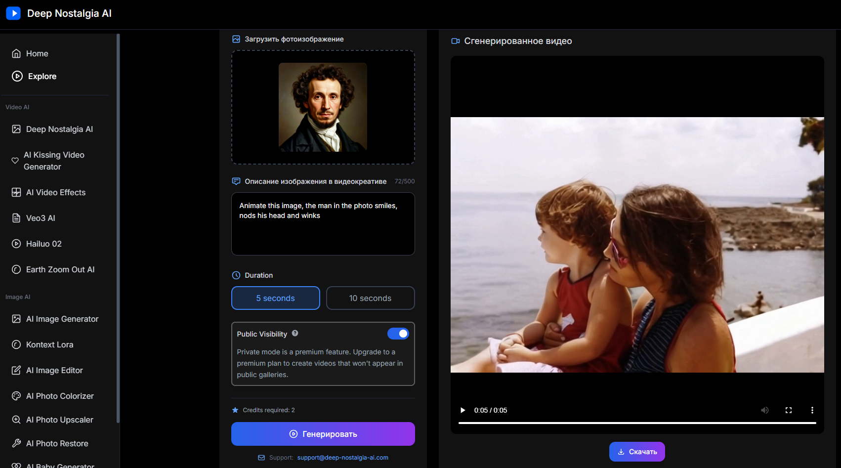 Что инструмент должен уметь: нейросеть для оживления фото должна создавать анимированные кадры и сцены на основе изображения и промпта.