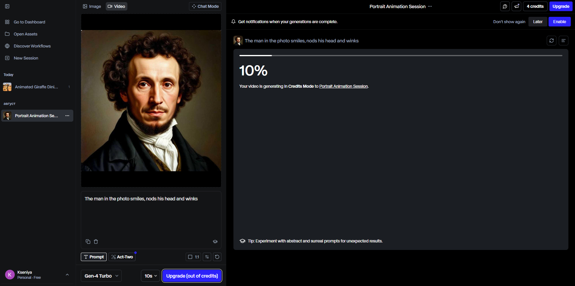 Анимация лица: добавление мимики, движения головой, улыбки. С этой задачей справляется Runway.