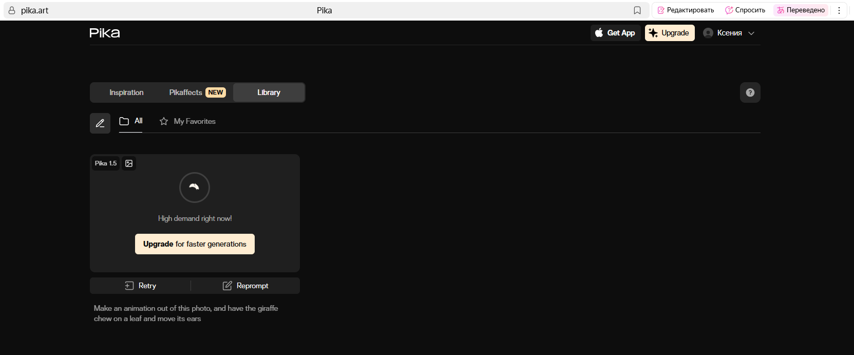 Сразу — результат: анимировать картинку не удалось. Мы попытались оживить ее с помощью нейросети, проверяли результат через два—три часа и даже через несколько дней — безуспешно. Генерация идет бесконечно.