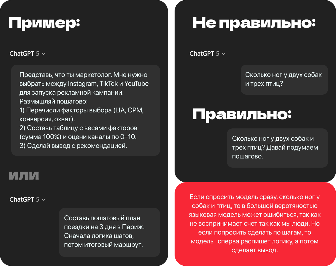 Работа с LLM требует четкой постановки задачи. Универсальные запросы дают средний результат, тогда как структурированные промпты позволяют управлять стилем, глубиной и точностью ответа. Ниже — приемы, помогающие повысить качество генерации и сделать результат предсказуемым: