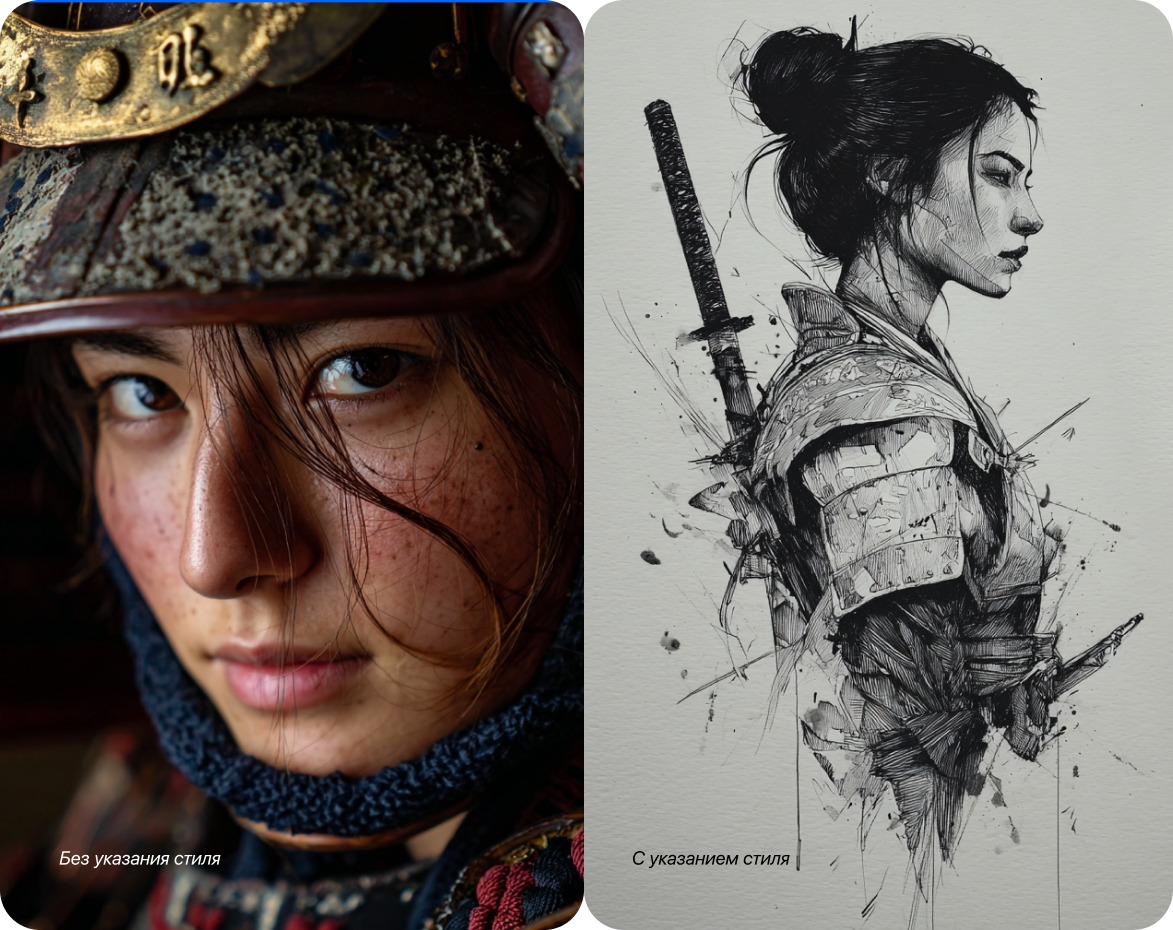 Чем понятнее вы опишете желаемый стиль, тем лучше модель поймет ваш замысел. Лучше всего — прикладывать подобное изображение, чтобы нейросеть считала с него стиль.