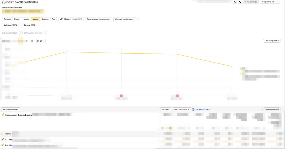 Через «Эксперимент» разделите пользователей на несколько частей, к каждой из которых будут применяться разные ставки внутри одной кампании. В зависимости от настроек стратегии ставки могут быть связаны как с ценой за клик, так и со стоимостью конверсии, если стратегия работает по оплате за конверсии на сайте (например, покупка или отправка заявки).