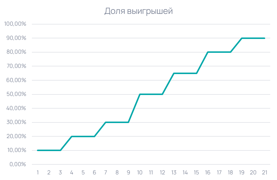 Логика подхода к тестированию разной доли выигрышей следующая: стоит идти итерационным путем, проверяя разный объем выигрыша.