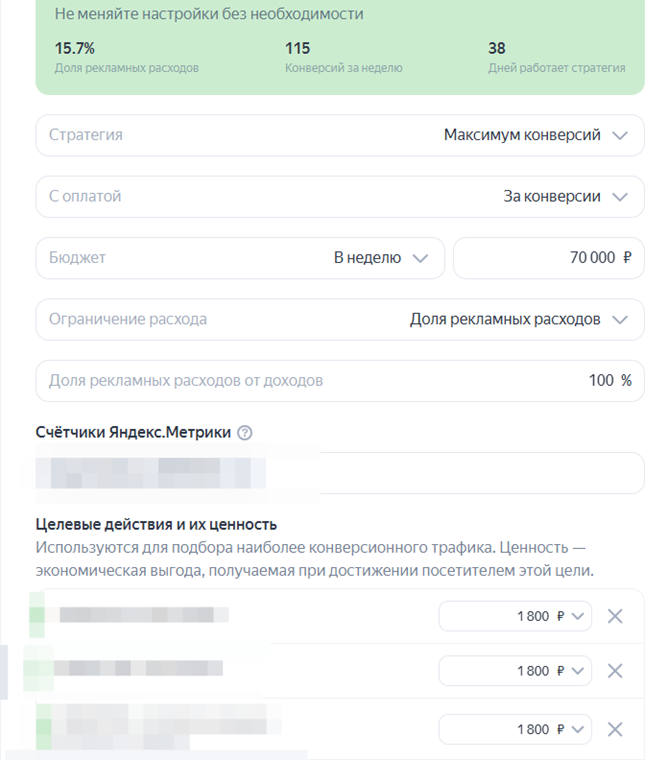 Собирайте в рекламные стратегии несколько целевых действий и ранжируйте CPA. Например, устанавливайте разную стоимость за конверсию на уровне стратегии кампании. Например, цели могут быть такими: