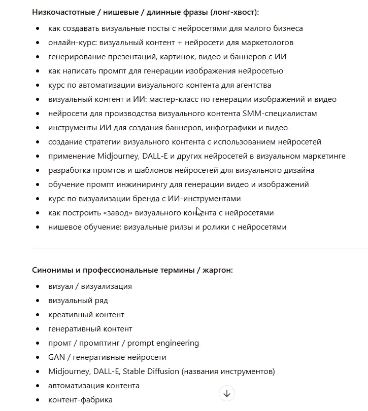 Важно: объясните нейросети, что вы имеете в виду под низкочастотными, сверхнизкочастотными и другими запросами. Потому что бывают случаи, когда ИИ считает низкочастотными настолько длинные по количеству слов запросы, которые пользователи интернета вводят раз в год. Поэтому перед тем, как начать работу, напишите тезисно: