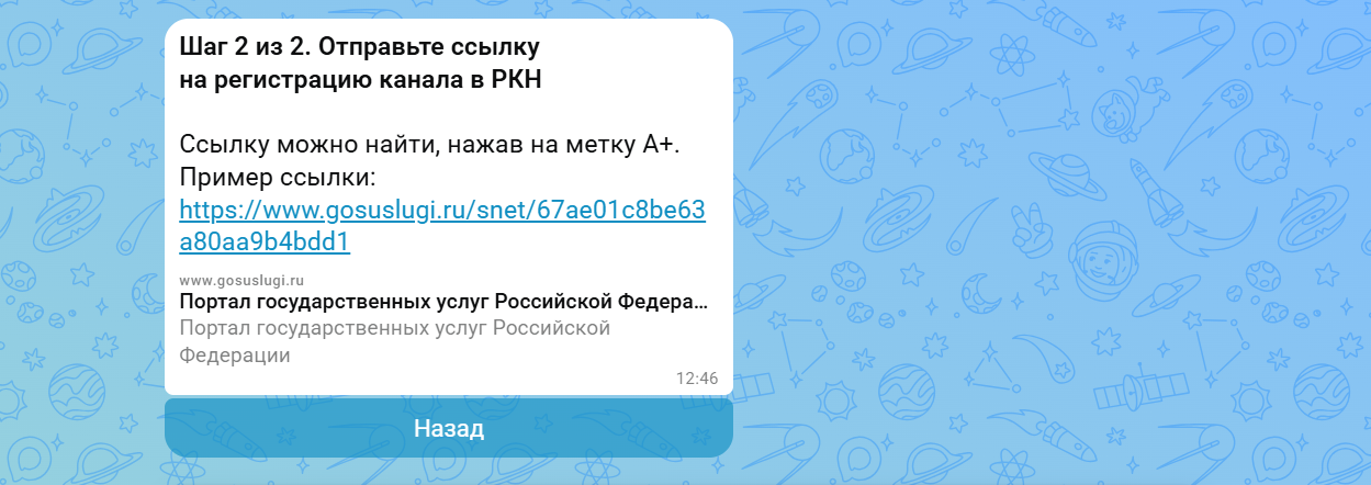 Шаг 6. Укажите ссылку на регистрацию канала в РКН.