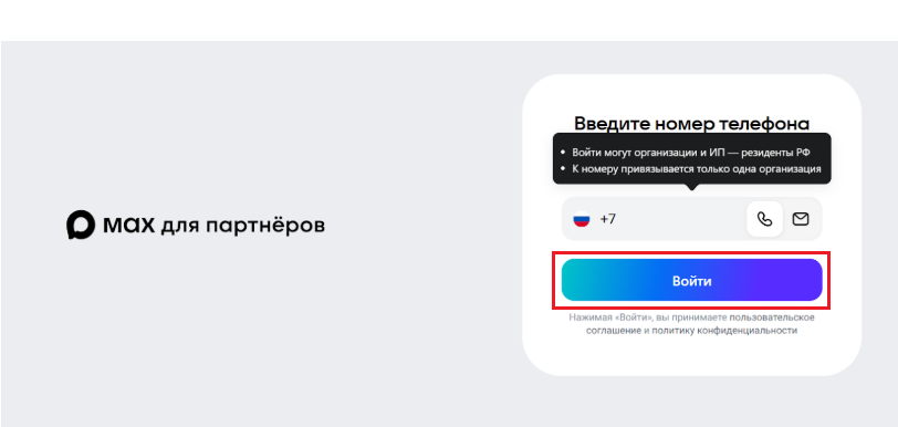 Шаг 1. Войдите по номеру телефона. Рекомендуют использовать корпоративный номер.