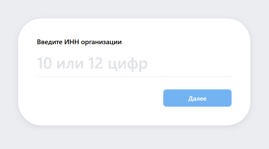 Шаг 2. Создайте профиль организации: для этого введите ИНН и следуйте инструкциям на экране.