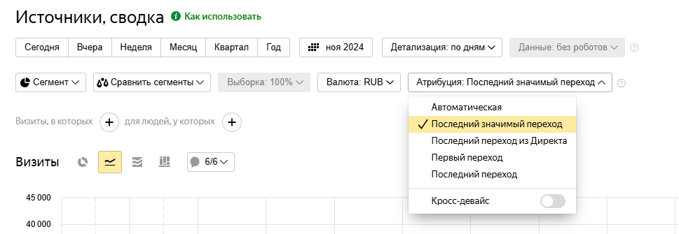 В этой статье не будем подробно рассматривать все возможные модели атрибуции. Вместо этого покажем, как построить самые простые и популярные из них — те, которых нет в стандартных отчетах Яндекс Метрики: