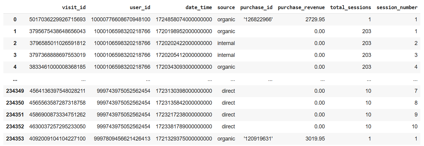 Не тратьте время и ресурсы на обработку всех визитов, а оставьте в таблице визиты только тех пользователей, которые в итоге совершили покупку. Некоторым моделям атрибуции нужны:
