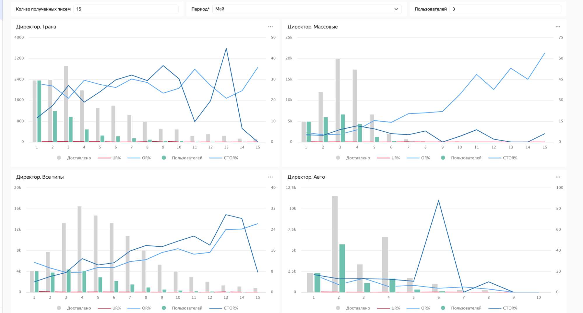 Для этого собрали данные по числу отправленных рассылок на целевые сегменты за один месяц. Это позволило увидеть общую коммуникационную нагрузку на аудиторию с разбивкой по типам писем: