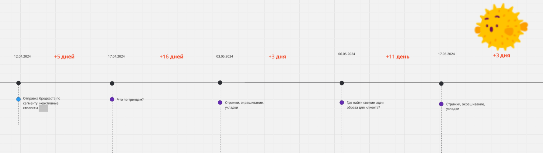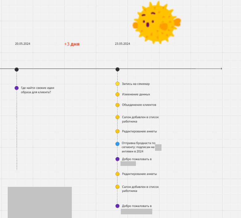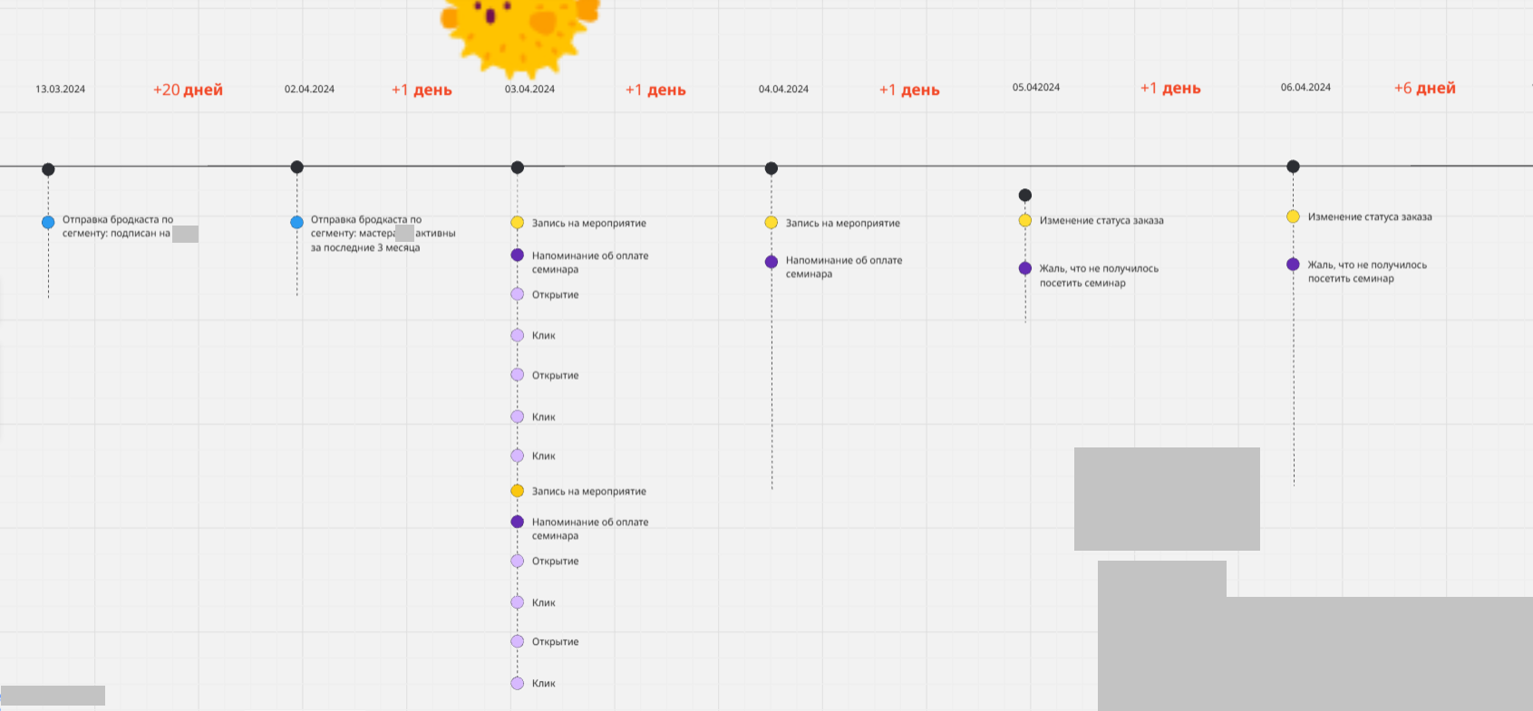 На проекте было задействовано около 80 автоматических цепочек, срабатывающих на разные события. При этом многие из них потенциально пересекались между собой. Это могло приводить к тому, что один и тот же пользователь получает несколько сообщений в день из разных цепочек — без учета общей логики коммуникации.