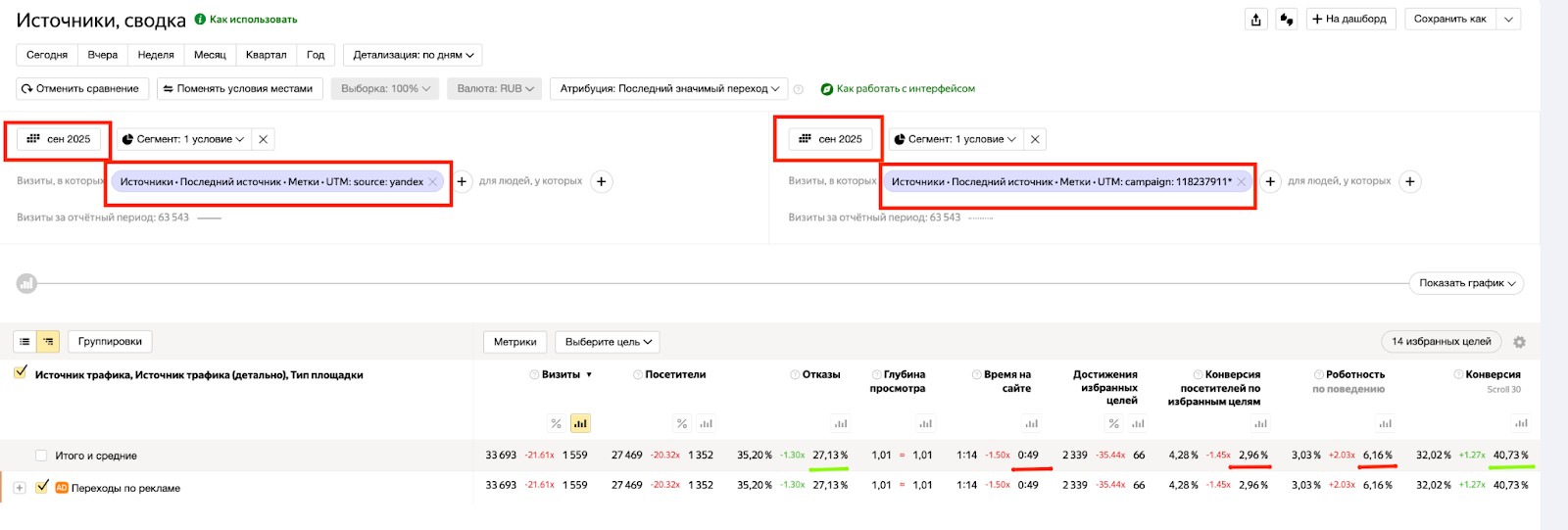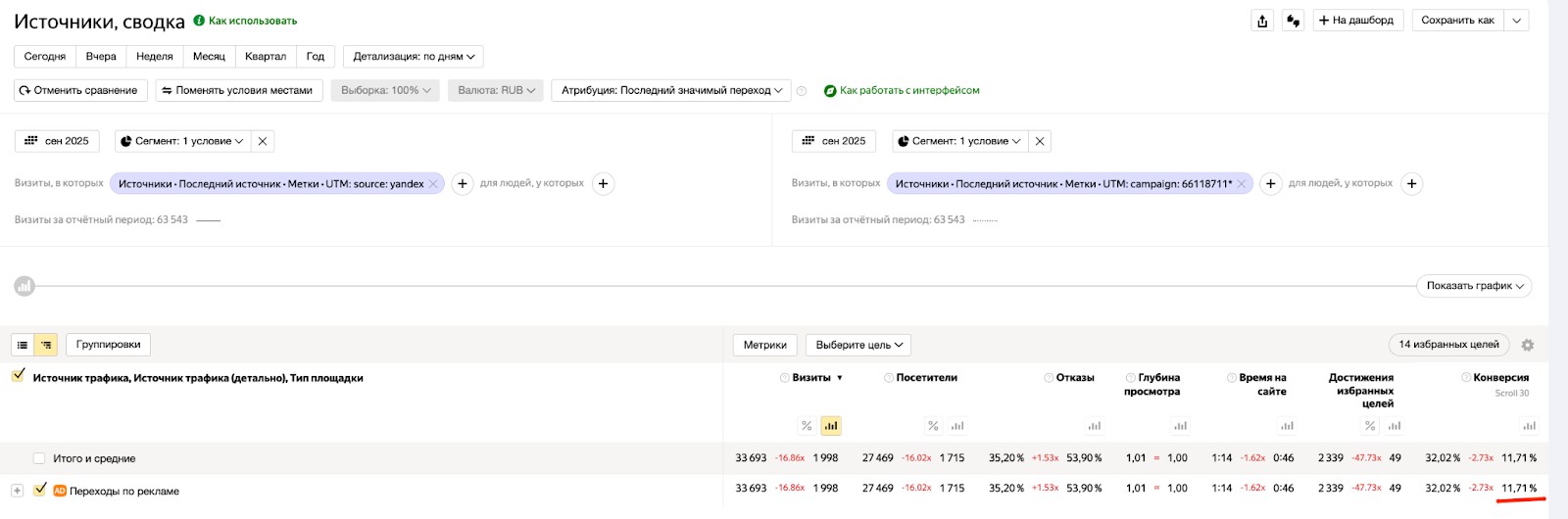сегмент со всем трафиком по этому же каналу для сравнения.