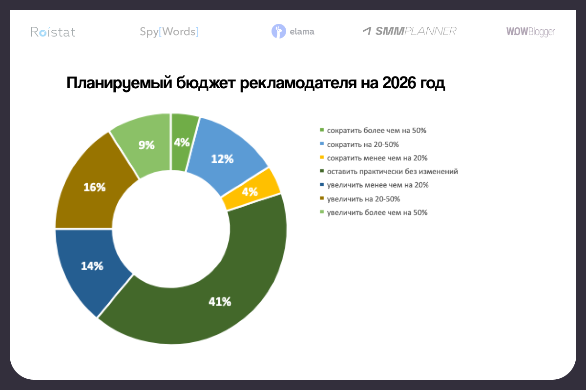 Аналитики eLama, SpyWords, SMMplanner, Roistat и WOWBLOGGER изучили планы российских рекламодателей на 2026 год. Судя по исследованию, бизнес продолжит вкладываться в performance-каналы.