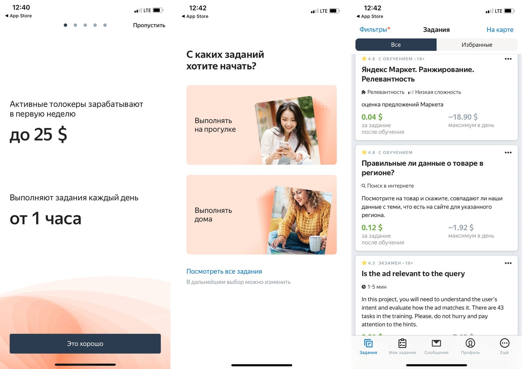Это приложение от Яндекса, в котором есть множество заданий, выполнить которые сможет только человек. Например, сфотографировать режим работы автовокзала (чтобы добавить эту информацию на Яндекс Карты), проверить, работает ли еще магазин на какой-то из улиц, оценить работу сайта и другие небольшие поручения.