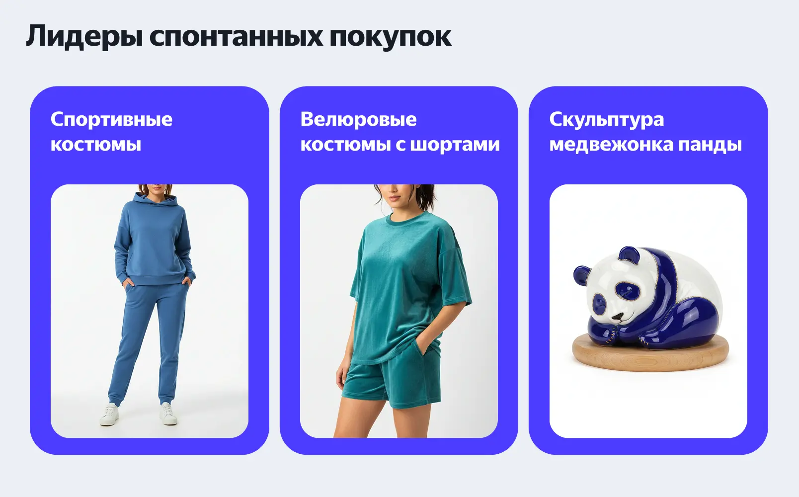 Некоторые категории товаров покупали практически мгновенно. В их числе — спортивные костюмы, велюровые костюмы с шортами, скульптура медвежонка панды.