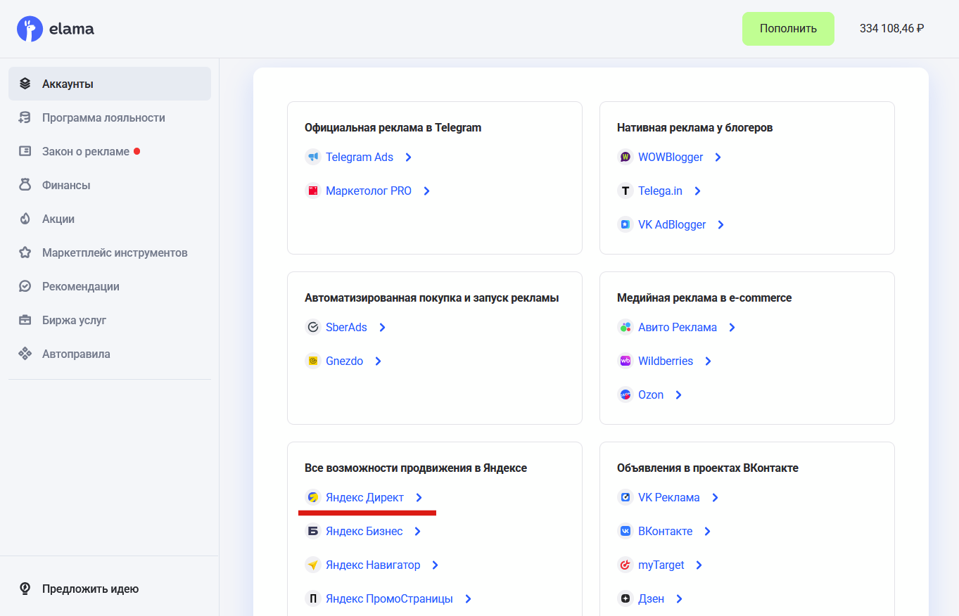 Бесшовный перенос аккаунтов из Директа в другие кабинеты управления, такие как eLama |