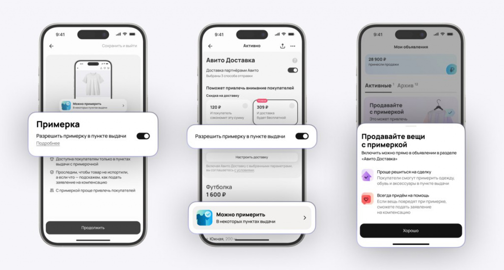 «По нашим исследованиям, более 30% пользователей Авито хотят примерить одежду, обувь или аксессуары при получении. Поэтому мы ввели функцию, которая позволит продавцам проще и быстрее продавать свои товары, а покупателям — еще комфортнее совершать сделки», — заявил старший директор по продукту в Авито Товарах Сергей Хакимов.