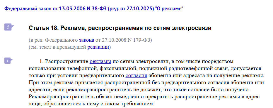 УФАС указало, что письменный отказ от 9 октября 2025 года был получен банком 14 октября, а звонок состоялся 12 ноября — то есть уже после того, как согласие было отозвано. Доказательств того, что клиент вновь разрешил рекламу, банк не представил.