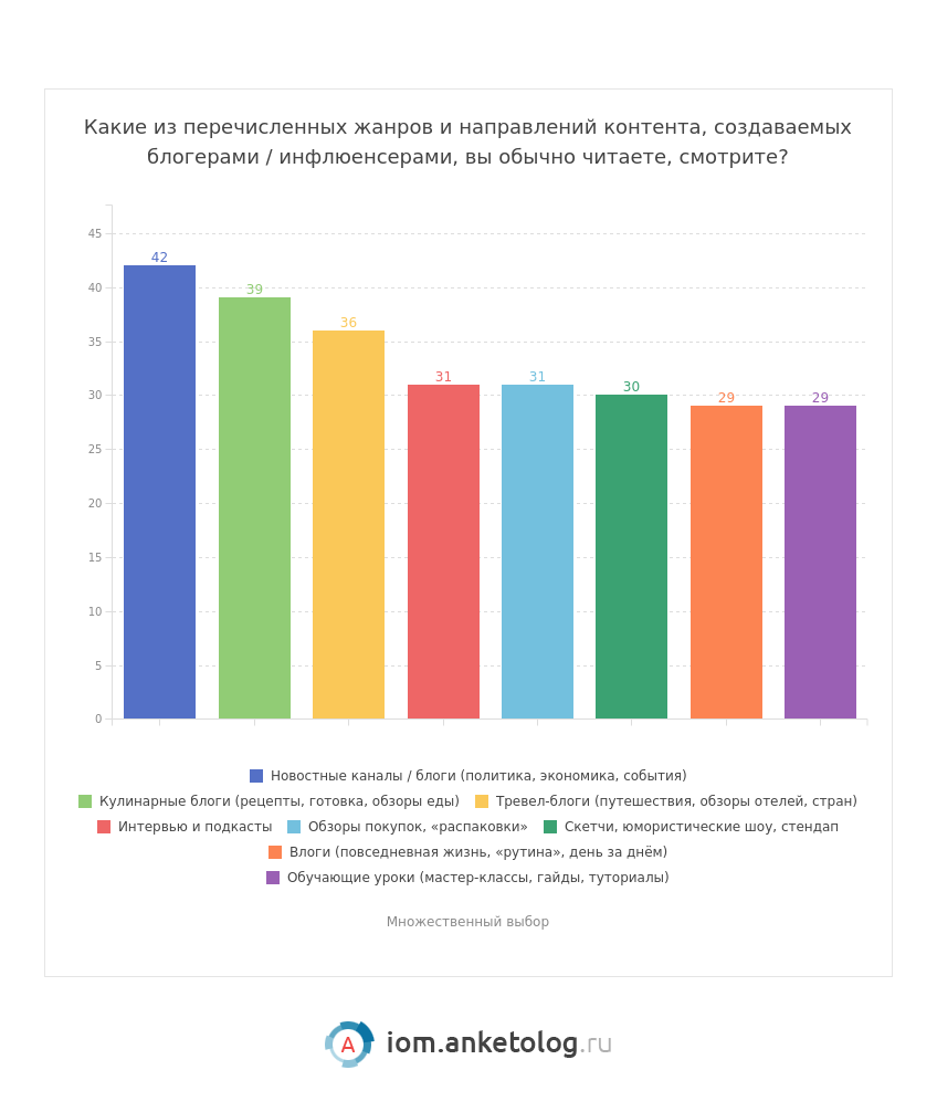 Мнение инфлюенсеров чаще всего влияет на выбор развлечений и товаров: