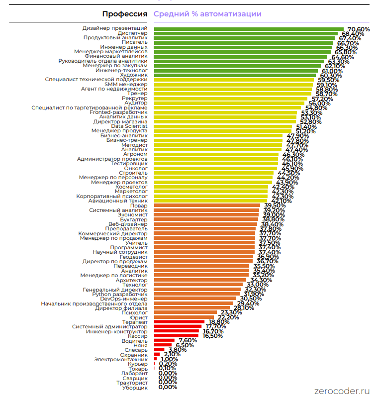 Профессиями с самым большим процентом автоматизации с помощью нейросетей оказались: