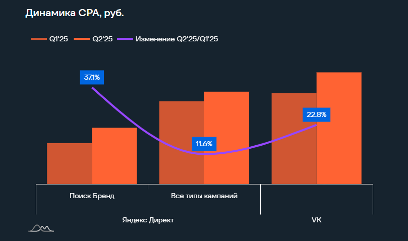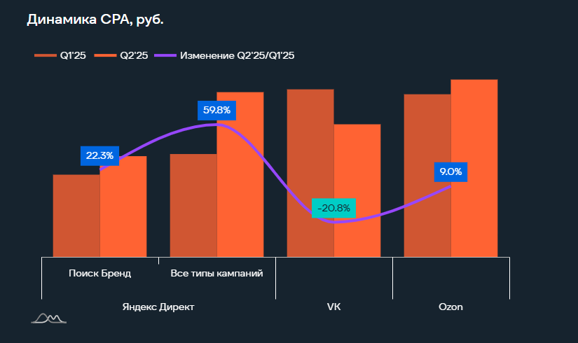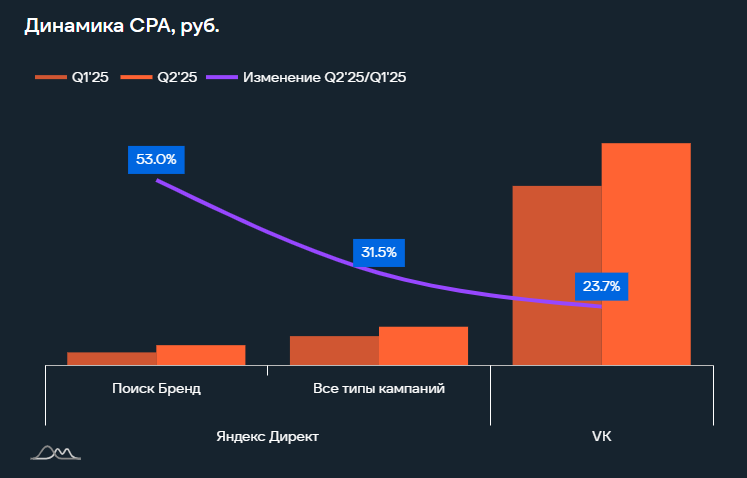 Между тем показатель CPA в сегменте в VK Рекламе, напротив, снизился на 20,8%.