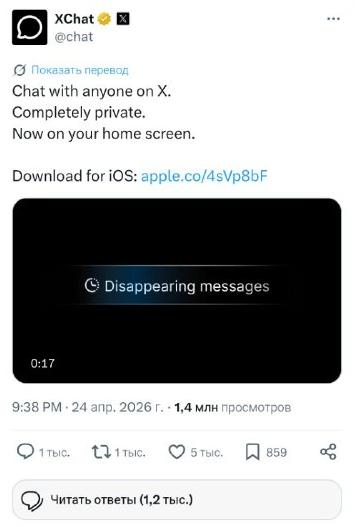 О запуске XChat команда мессенджера объявила 24 апреля. Пока он доступен только на iOS.