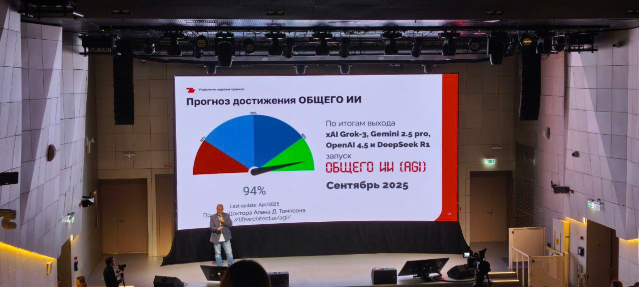 В этом году на рынке ожидается появление AGI — это искусственный общий интеллект, который сможет функционировать на уровне среднестатистического человека: думать, решать задачи, действовать и пр. Появление искусственного общего интеллекта ожидается уже в сентябре 2025 года с вероятностью в 94%. Об этом рассказал Сергей Журихин, проректор Университета Правительства Москвы, Управление кадровых сервисов правительства Москвы, в своем выступлении на Tech Week в Москве 26 мая.