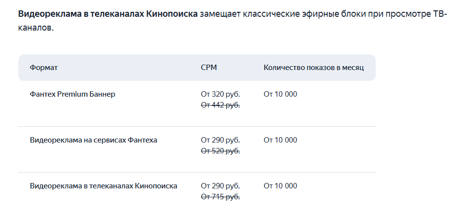 Стартовая CPM по программе поддержки — от 290 рублей.
