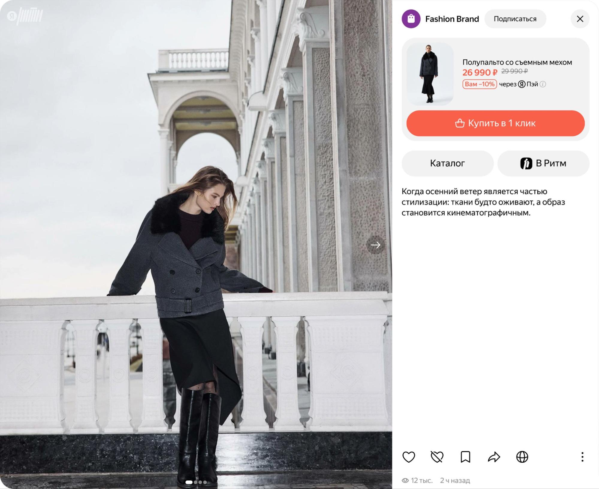 Кнопка «Купить» в постах Яндекс Ритма — переход к оформлению заказа в один клик прямо из рекомендательной ленты |