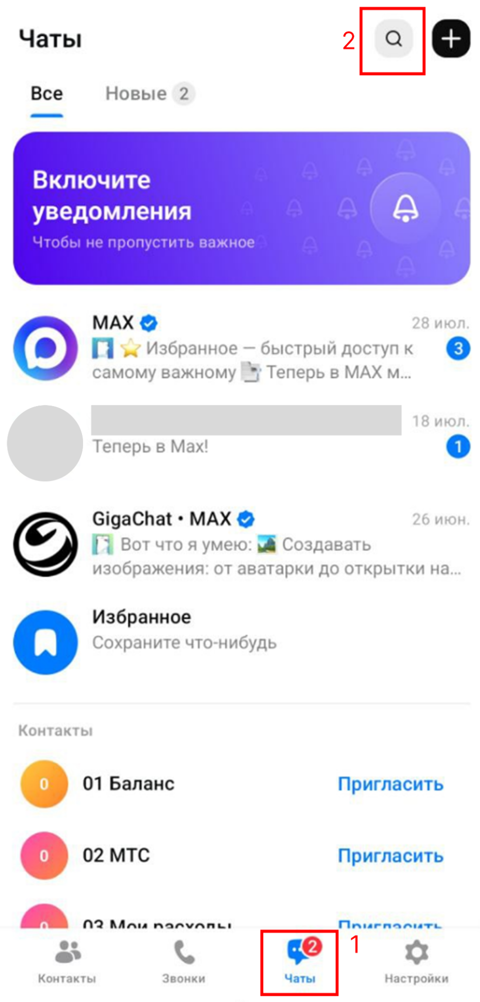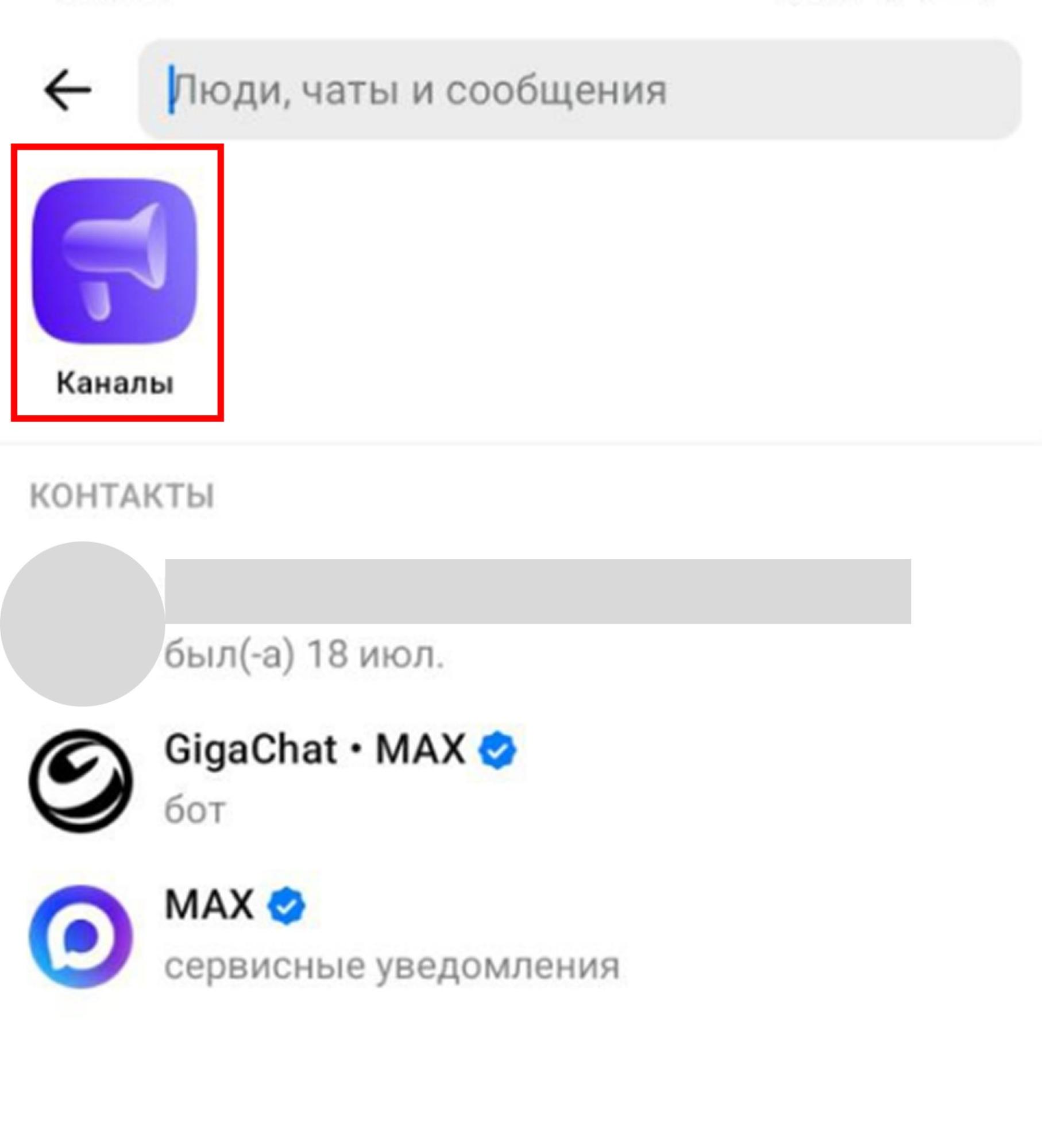 Чтобы найти каналы в мессенджере Max, нужно в главном меню нажать «Чаты» и значок лупы.